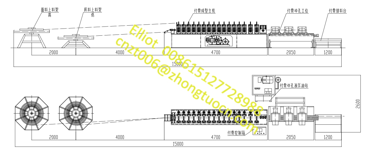A complete T Roll Forming Machine production line includes:
